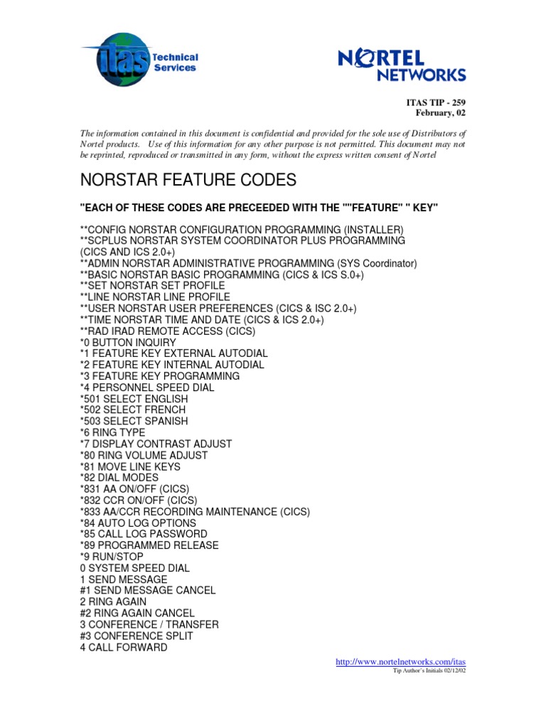 nortel networks phone codes
